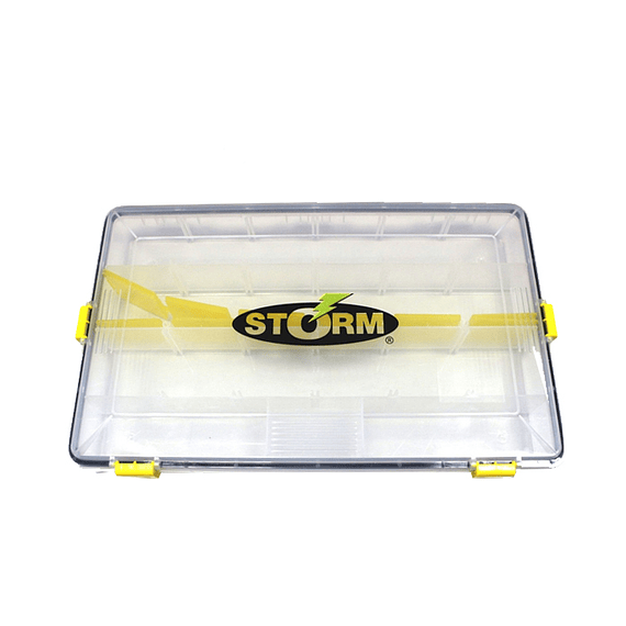 CAJA ORGANIZADORA DE LA MARCA STORM, IDEAL PARA ALMACENAR/GUARDAR TU EQUIPO DE PESCA GRACIAS A SUS COMPARTIMIENTOS HORIZONTALES. SU TAPA CON GOMA E...